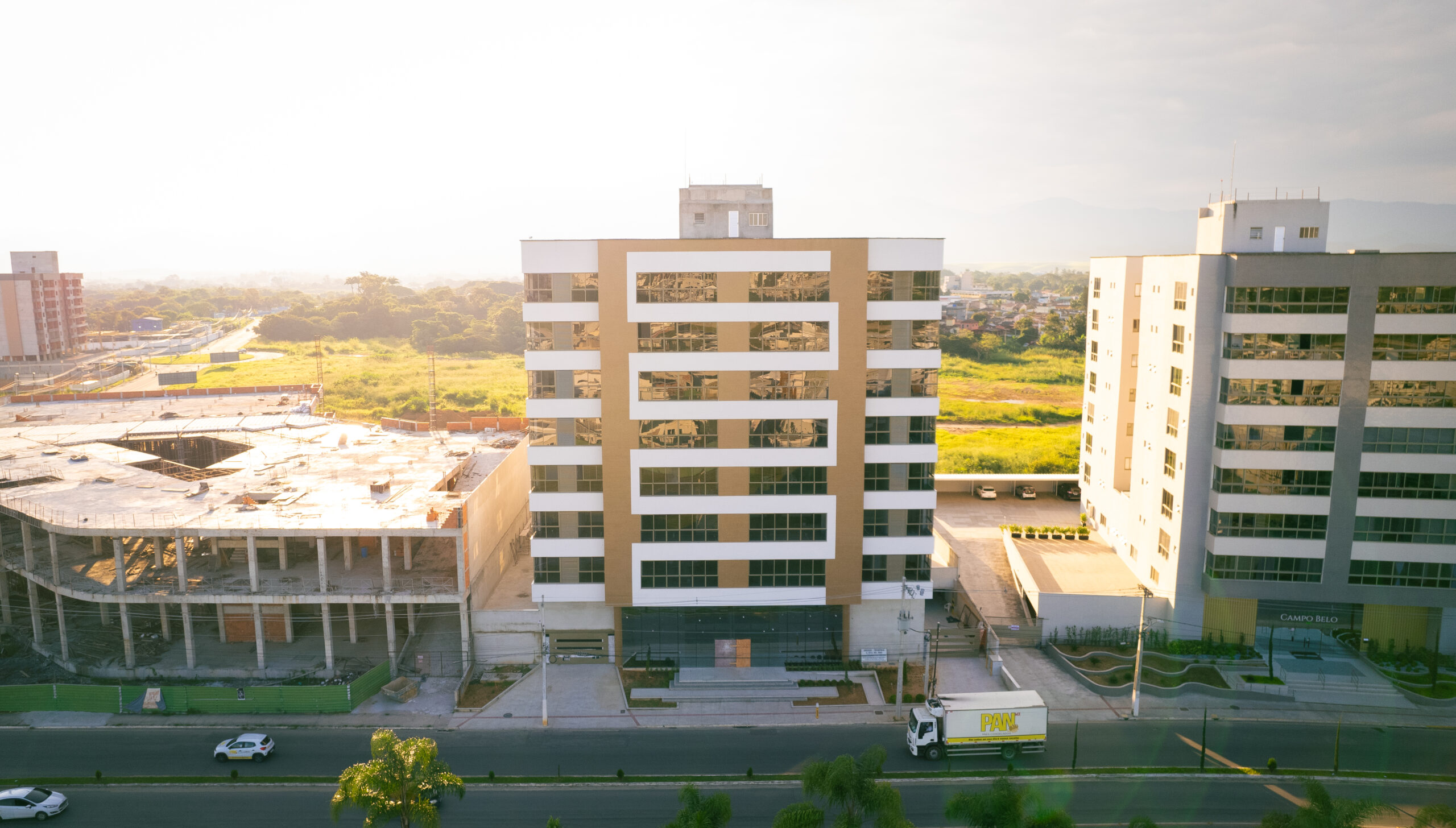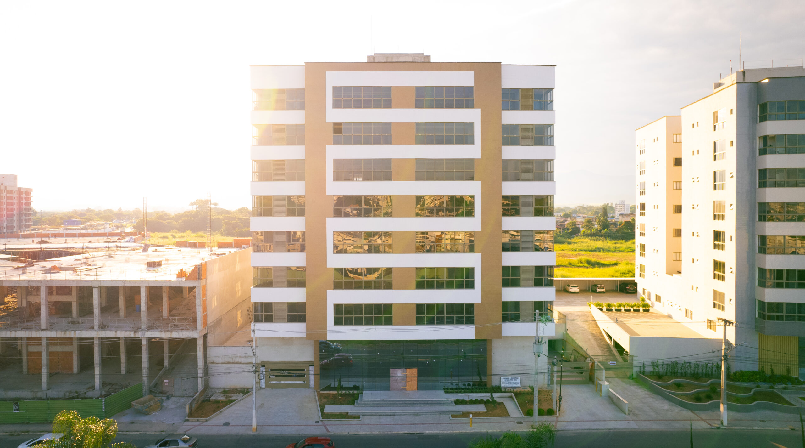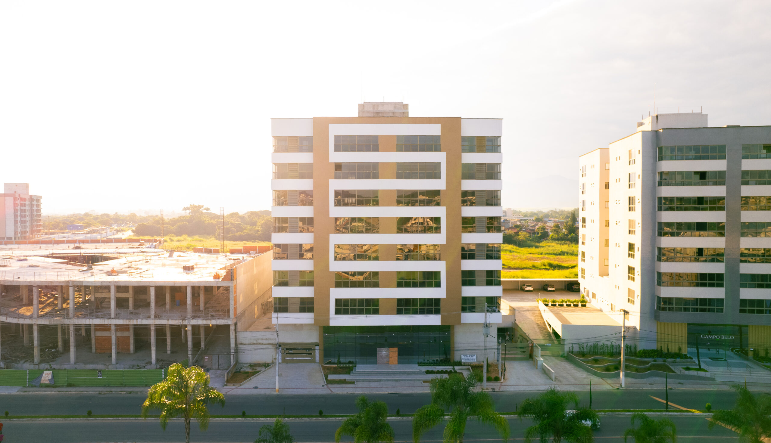 O projeto base que estudamos consiste em apartamentos de aproximadamente 190,00 m² cada com 3 suítes mais home office, duas vagas de garagem, em terreno com área total de 2.000,00 m².
